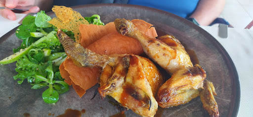 Read moreDurante il soggiorno di due notti nell'omonimo hotel, abbiamo potuto consumare la colazione la mattina e due cene. La collocazione all'aperto, sotto una tettoia e tendaggi è piacevole, riparata e con una buona circolazione dell'aria. La distanza tra i tavoli è stata molto apprezzata. Il servizio si è subito dimostrato molto molto buono, grazie al ragazzo che prendeva le ordinazioni e soprattutto alle due giovani cameriere che hanno seguito il nostro tavolo. Brave, cordiali e sorridenti. Il menù ha una certa varietà, anche se magari non è in grado di accontentare proprio tutte le esigenze. Molto gradita la presenza anche della pizzeria, che è stata la nostra scelta la prima cena. Pizze ottime e digeribili! La seconda cena, abbiamo preso una fregola allo scoglio, gustosa e di grande quantità e cosce di galletto ruspante con contorni di insalata e riduzioni. Molto buona e per me sufficiente, ma potrebbe scontentare chi è di buon appetito. Apprezzato nel menu la presenza di una tabella degli allergeni per intolleranze e allergie. Essendo io intollerante al glutine e al lattosio, combinando le varie soluzioni, per me non c'era una scelta elevata (tra gusti personali e le intolleranze appunto), ma ci sono abituato e pace. La pizza l'ho presa, mettendo in conto i disagi del glutine (no celiachia). Ma ripeto, era ottima anche perchè l'ho presa con scaglie di grana al posto della mozzarella per superare il problema del lattosio. Il conto mi sembra adeguato al servizio, alla bontà dei cibi e alla location. Essendo ospiti dell'hotel, la presenza del ristorante sotto rappresentava una super comodità. Una cosa apprezzata è stato l'orario che da un lato può essere visto come limitante per i clienti esterni, ma è una tutela per i clienti dell'hotel nelle camere sopra e che si affacciano all'area ristorante, visto che il dopo pranzo e la notte dopo le...