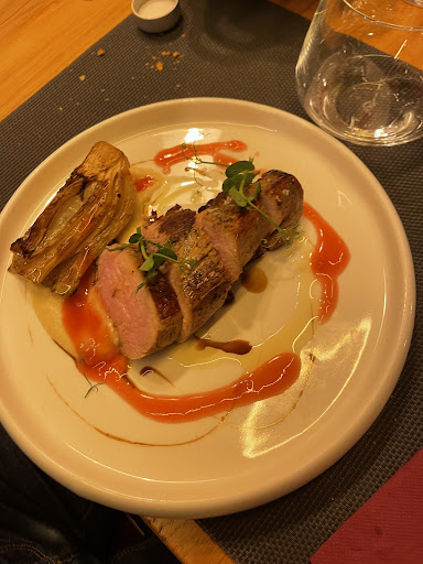 Read moreLocale semplice ma comunque accogliente. Piatti veramente ben presentati ma soprattutto molto buoni. Eravamo in 5 e abbiamo provato diversi piatti e tutti, sottolineo tutti ci hanno deliziato. Dallo stecco di anatra con le amarene che è un piccolo capolavoro, alla burratina fritta con il brodo di prosciutto, al carpaccio di manzetta . Menzione a parte merita il raviolo aperto con patate e cicoria con scaglie di tartufo che mi ha entusiasmato. Per finire gli immancabili dolci, da gustare il chicco di caffè alla nocciola con lo zabaglione. Un bravo davvero allo chef e allo staff. Una cucina creativa che rende onore ed esalta delle ottime materie prime. Esempio perfetto per dimostrare che non solo nei ristoranti stellati ci sono ottimi professionisti in cucina Da provare...