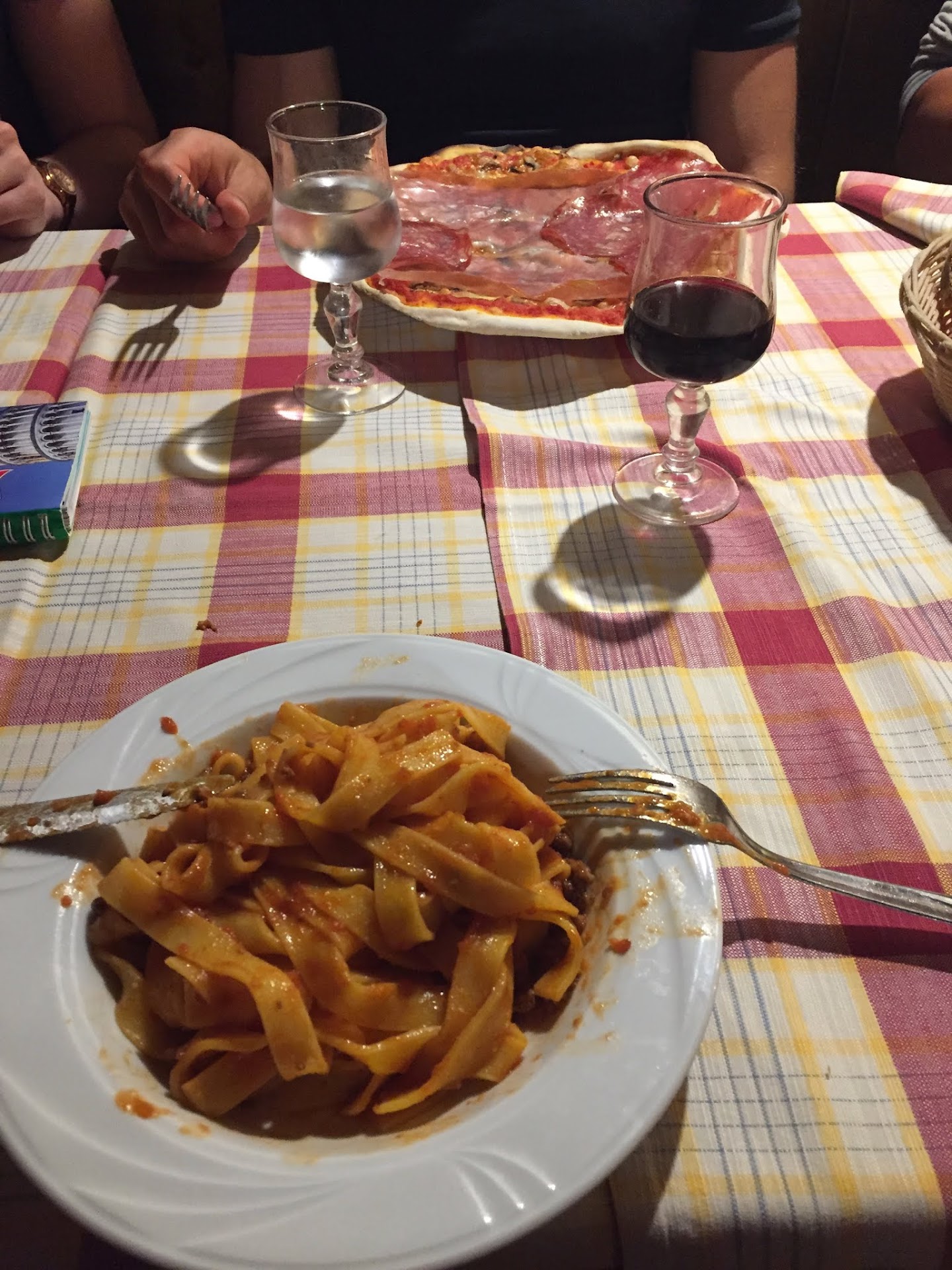 Do 3 stelle perché il personale è veramente disponibile ed il posto merita, ma la cucina lascia veramente senza parole (in negativo!). Abbiamo ordinato un antipasto della casa, due mezze porzioni di pasta al sugo e una pappardella ai funghi porcini e dei tonnarelli alla boscaiola.