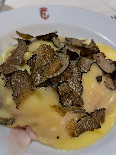 Una delusione .. antipasto davvero minimo in varietà e gustosità, tortelli semicrudi, tagliolini assurdi.. vedere la foto.. sembrano spaghettini ed erano incollati al fondo del piatto, il vero tagliolino è un’altra cosa, inoltre i funghi in piena stagione erano insipidi, di sicuro roba dalla Romania o posti del genere. sul vino velo pietoso: chiediamo un Lambrusco di sorbara , ci dicono che è di una cantina diversa da quella del menu ma accettiamo comunque.. non conoscendolo volevamo provarlo: arriva un rose’ e ci spiegano che quel vino è fatto così.. se me L avesse detto subito che era un Lambrusco rose’ avrei preso altro. Comunque chiarito il punto lo cambiamo con un Otello. Questo solo per dire che i camerieri non sono in grado di servire a dovere il cliente.. e andrebbero un minimo istruiti. AH , sappiate che qui non c è un italiano , uno dico neanche per sbaglio, camerieri indiani o dell’est con strano umorismo non certo piacevole.. dalla cucina voci straniere , musica etnica .. INSOMMA sei in Emilia ma non sei in Emilia. Se cercate tipicità e qualità meglio andare altrove. prezzi medio-bassi ma per pietanze mediocri.. Ps : chantilly allo zabaione: indifferente e impiattamento da anni 80. Io toglierei le tre targhe “Michelin” degli anni passati..L ultima risale al 2020.. chissà perché poi non c’è più stato nulla da premiare.. un effetto long covid ?! Adios.