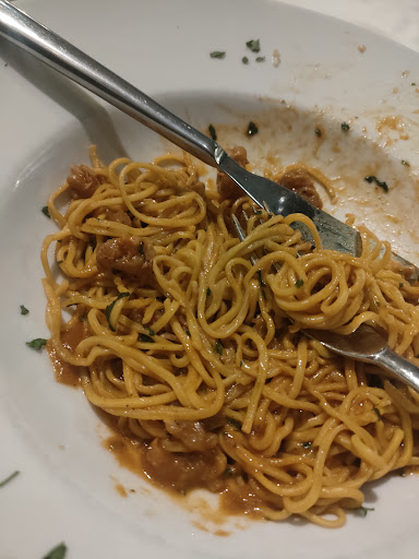 Abbiamo ordinato due antipasti di gamberi su letto di purè di patate, abbastanza insapore ma mangiabili. A seguire purtroppo un tagliolini agli scampi dove lo scampo era solo quello appoggiato in cima al piatto. La bisque non era assolutamente di scampi (al contrario di quello che il proprietario estremamente sgarbato ha continuato a ribadire fino alla fine) e all'interno vi erano dei pezzi forse di gamberi, ma non ne sarei così sicura poiché erano veramente scuri e immangiabili. Assenza di qualsiasi sapore ma non sapevano assolutamente di scampi! Alla mia lamentela non è stato fatto nulla per rimediare, nemmeno ho potuto parlare con lo chef. Al conto ho fatto presente di nuovo al proprietario (non italiano, scusate ma devo dirlo) che si è subito alterato visibilmente dicendomi che non so cosa voglia dire mangiare bene e cosa siano gli scampi (al contrario suo lo so bene poiché sono italiana e conosco la cucina). Ha inoltre aggiunto che gli ho dato del ladro quando ho solamente detto che se si scrive sul menù tagliolini con scampI nella loro bisque, l'unico scampo non può essere quello che metti in cima al piatto. Ha inoltre detto che gli scampi diventano scuri a causa del pomodoro, ma chi crede di prendere in giro?! Scandaloso. Non si sono offerti di offrire qualcosa visto che hanno visto che non ho mangiato praticamente nulla né di scontare il piatto (è stato fatto solo un arrotondamento di 2,50€). Scortesia ai livelli massimi. Mentre siamo uscite stava ancora sparlandomi dietro per la mia lamentela. Non so veramente questo uomo chi si creda di essere, non sono mai stata trattata così in nessun ristorante in giro per il mondo né tantomeno in Italia. Umiltà zero. Nemmeno si è scusato che il piatto non era di mio gradimento anzi mi ha aggredita. Fritto misto passabile ma palesemente non fresco. Ultimo appunto, la ragazza ha faticato ad aprire la bottiglia di vino e pezzi di tappo erano caduti nel vino e inoltre non era il vino che avevamo ordinato (bensì un'altra etichetta che non apprezzo) e non si sono neanche degnati di chiedere se andava bene lo stesso. Ci sta tutto ma essere presi in giro e trattati come imbecilli no, specialmente se i prezzi sono alti. 80 euro per due antipasti e due piatti più vino e acqua, che se fosse stata una buona cena avrei pagato più che volentieri. Consiglio vivamente una scuola di rispetto e buone maniere al proprietario perché è lì per soddisfare i clienti non il suo ego anche quando ha palesemente torto. Un insulto alla cucina e all'ospitalità italiana. Non torneremo mai più, questo è...