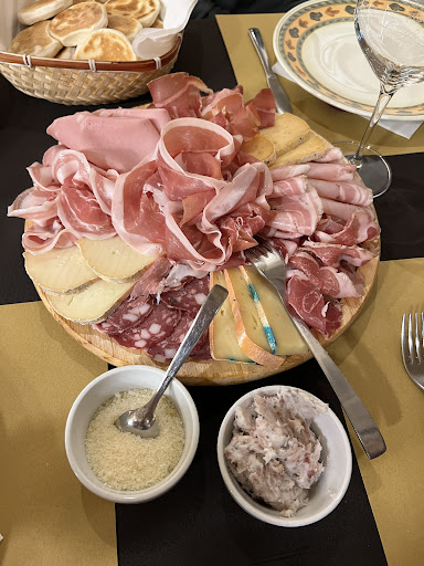 Read moreIl locale è stato da pochi anni allargato, ora la capienza è stata quasi raddoppiata, ma nn illudetevi, per assicurarsi un posto occorrerà comunque prenotare con leggero anticipo. Il menù degustazione tigelle con affettati misti e formaggi è sicuramente il loro cavallo di battaglia, il costo a persona di 24€. Ottima la carta dei vini, davvero ampia e di pregevole qualità! Quando sarete pieni da scoppiare e nn riuscirete a finire le ultime tigelle, non preoccupatevi, arriverá in vostro aiuto una scodella di Nutella! Possibilità di pagati cash o con carta. La figlia del proprietario, simpatica e preparata sulla carta dei vini vi offrirá dell’ottimo passito per concludere in...