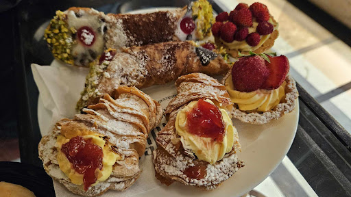 SUPER CLASSY CAFE ! What a thrill for us to be back in beautiful Salerno, Italy. My wife and I spent 4 days here about 18 months ago and loved it all. Especially the fabulous pizzerias, cafes and gelato shops. And so close to the Amalfi Coast where we saw some of most beautiful scenery you can imagine. NEW VISIT ! Our good friend Martin also our private tour guide / limo driver drove us from Florence to Salerno on Thurs, March 27th…it was a 5 hour drive. We had a lovely 2 bed / 2 bath Airbnb on the 4th floor virtually on Corso Vittorio Emanuele…the long pedestrian mall that runs the length of downtown Salerno. During our 6 day vacation here we revisited most of our fav places from our first visit incl Bar Rosa al Corso where the cappuccinos are the best in town. On Saturday we came here around 10.30am for coffees and met up with a few of the staff…baristas Manuel, Antonio, Gabriel and Luigi the owner. We grabbed a comfy table inside. Our double shot cappuccinos tasted sensational and my wife loved her custard filled pastry. VERY BUSY ! It was fun to watch all the customers coming and going with their coffees, pastries etc. On Sunday we arrived here soon after 7pm for breakfast. Cheerful barista Gabriel looked after us at the service counter when I ordered 2 x double shot cappuccinos, a fresh squeezed orange juice, 2 x focaccia slices plus 2 savory pastries. Within a few minutes everything was brought to our table at the very rear of the cafe. We loved our rich creamy cappuccinos and my fresh squeezed orange juice was delicious. The focaccias and savory pastries tasted alright but to be honest we would have preferred bacon & eggs with toast…not their model. BIG DAY ! Our good friend Eugenio also our limo driver was picking us up near our apartment at 9am to drive us to Herculaneum for a tour. There we met up with our friend and private tour guide Pina a renowned archeologist. AMAZING SCENERY ! On Monday we enjoyed an enthralling private tour of the Amalfi Coast with Giovanni our limo driver. APRIL 1ST ! On Tuesday we had another big day planned….riding our rented eBikes from Salerno to the half excavated Roman Villa in Minori. BUT FIRST ! We popped in here around 7.45am for a light breakfast…a couple of double shot cappuccinos, a fresh squeezed orange juice and 4 little focaccia slices. Everything was brought to our table by Mario the happy food runner. We enjoyed all our visits here…the friendly staff made us feel very welcome. VERY...