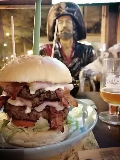 Read moreAttratte dal locale carino e originale, in stile pirati dei Caraibi e pensando che la folla fosse sinonimo di ben mangiare, decidiamo di entrare in questo pub. Se solo potessi tornare indietro nel tempo...! Ci sediamo e ordiniamo due alette di pollo con corn flakes all'americana, due hamburger al piatto e 2 birre. Le birre arrivano abbastanza presto, ma evidentemente erano sul bancone ad attendere già da un po', perché mancava la schiuma e risultava già evaporata. Mentre attendiamo gli antipasti richiesti, vediamo arrivare patatine e sfizi a tavoli entrati dopo di noi e sentiamo forti lamentele ad un altro tavolo dovute al fatto che i commensali stessero mangiando ognuno per conto proprio, poiché 2 portate erano arrivate molto molto prima rispetto alle altre. Aspettiamo invano il pollo fritto, che non arriverà... Arrivano intanto i due hamburger, di cui uno richiesto al piatto arriva in un panino... Quindi lo riportano indietro e lo riportano servito al piatto. Ragazzi che dire, è qui che arriva il peggio... Posso capire le attese, la disorganizzazione, l'inesperienza dei camerieri e forse del proprietario stesso... Ma non una qualità di cibo tanto scadente: tutto ciò che era nei nostri piatti è arrivato freddo, nulla sapeva di nulla, un hamburger spacciato per un chianina da 200g non era altro che una suoletta di scarsi 100g, ustionata fuori e dentro semicruda... Secca che se la lanciavamo in faccia a qualcuno si feriva... Patate fritte sempre fredde, funghi a loro detta porcini, che non avevano alcun sapore... Bacon cotto male... Davvero non so descrivervi quanto sia scadente il cibo che servono. Al momento del conto, pago ingenuamente ed esco dal locale senza dire nulla... Ma ad un tratto mi sovviene la portata di antipasto mai arrivata così io e la mia compagna vediamo lo scontrino (salato) e ci rendiamo conto che era stata messa anche quella!!! Rientriamo e lo facciamo notare: SENZA NEMMENO SCUSARSI, danno indietro i soldi. Conto salato, dal quale non è stata fatta nemmeno un'attenzione commerciale di 10 centesimi (36.10 € esattamente e il tizio alla cassa ha chiesto prima l'euro e dieci e poi il resto... Mai visto uno schifo del genere... Altri avrebbero arrotondato a 36. Ma lasciamo perdere). Spero vivamente che questo locale chiuda. Ad ogni persona che entrava mi veniva la voglia di suggerire di uscire, tanto che si mangia male... Ripeto, la cosa su cui sono rimasta sbalordita in negativo è la PESSIMA QUALITÀ del cibo....