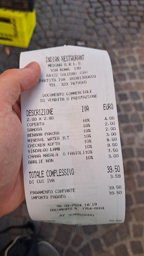 Read moreEverything 5 star. Absolutely amazing service, staff were welcoming and happy of our presence. Placed our orders, and our mango lassis we order were fresh, and brought to us filled to the brim. Beautifully made and tasted brilliant, before a short reasonable wait for our food. An enjoyable atmosphere allowed us to converse with fellow customers from England as well. Food came out steaming fresh and we were served condiments alongside the food. Constantly checking up on us, if we needed anything and even a water on the house. Cost was reasonable for the quality of the food, and would be one of my favourite food spots whilst being in Salerno. Deffo will try again, a must have whilst on holiday here. A very well run...