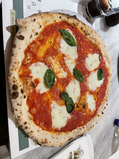 La vera pizza napoletana, sottile, leggera e semplice (marinara o margherita). L'ho sempre mangiata nella sede di Napoli ma devo dire che anche quella di Salerno è davvero ottima. Non do il massimo punteggio per la gestione covid: nessuno ha chiesto il green pass, anzi, quando ho chiesto se avessi dovuto mostrarlo, la ragazza all'entrata mi ha preso anche in giro dicendo " si, certo." Dopo mezzo secondo, si è girata facendo finta di nulla. Dopo dopo due ore di fila, non è stato chiesto a nessun cliente. Credo sia ingiusto non rispettare le regole, soprattutto nei confronti di chi invece lo fa.