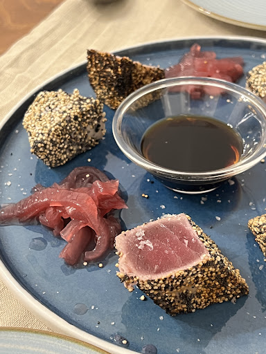 The meal was simply extraordinary. We started with the sesame-crusted tuna, a dish so fresh and tender that it melted in our mouths, and the octopus salad, which was unlike any salad I’ve ever had. Bursting with flavor and perfectly prepared, it was easily one of the best appetizers I’ve ever experienced.