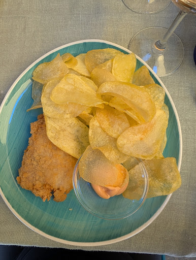 The fish and chips were the only part I didn’t love. The fish was slightly overcooked and a bit too salty, and the crust wasn’t very crispy. The chips were more like thin homemade potato crisps, also too salty.