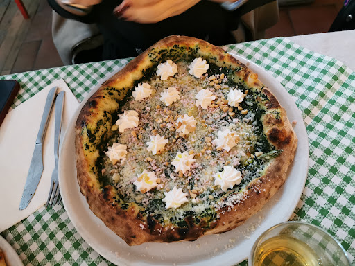 Sabato sera, verso le 20.30 (quindi ormai tardi) telefoniamo per chiedere se c'è posto per 4. Ci viene detto che possono darci un tavolo a partire dalle 22 in quanto il turno fino alle 22 è full. Accettiamo e siccome eravamo già per la strada arriviamo per le 21.30, parcheggiamo e decidiamo di fare 4 passi nell'attesa. Camminando passiamo davanti al locale e notiamo che è semivuoto con almeno 4 tavoli liberi che avrebbero potuto ospitarci. Adesso, essendo le 21.30, abbiamo pensato che ormai quei tavoli fossero liberi in quanto anche se fosse arrivato qualcuno a ogni tavolo non avrebbe certo finito di mangiare per le 22. Allora abbiamo deciso di chiedere se per caso potevamo sederci prima. Folli! Ci viene detto da una signora alla cassa con tono abbastanza di saccenza che il posto non c'era e che avremmo dovuto aspettare le 22. Va bene, ci facciamo da parte ma decidiamo di aspettare lí. Visita l'antipatia nella risposta adesso dobbiamo capire! 21.35: locale semivuoto. 21.40: locale ancora semivuoto, scambio di sguardi con la signora alla cassa. 21.45 si libera ulteriore tavolo, sguardi incrociati con la signora alla cassa. 21.50 si libera altro tavolo e gli sguardi si scontrano stile Sergio Leone con momentaneo allontanamento della signora dalla cassa. 21.55 il fattaccio!!! Una cameriera molto gentile, notando la nostra attesa e resasi conto dell'abbondanza di posti liberi ci invita a sederci coadiuvata dall'assenza della suddetta signora dalla cassa. SACRILEGIO! Mentre alle 21.56 seguiamo la cameriera verso il tavolo la poverina viene intercettata dalla solita signora alla cassa che alla cassa non era ancora tornata, viene chiamata in disparte e palesemente redarguita sul fatto che noi avremmo dovuto aspettare le 22 mentre intanto l'orologio segnava le 21.57. Ormai il dado è tratto, ci accomodiamo in un senso di disagio generale mentre, ovviamente, gli altri tavoli erano ancora vuoti e qualcun altro intanto si era alzato. Per fortuna il cibo era molto buono. Tra i fritti e le pizze siamo rimasti molto soddisfatti e il fatto increscioso è passato in secondo piano. Buone le pizze e buoni gli ingredienti. Buonissima, molto sopra la media, la pizza senza glutine. Scarsa l'offerta di birre. Il locale soffre un po' dello scorrere del tempo ma è carino. A parte l'ormai famosa signora alla cassa il servizio è buono. In breve, sicuramente ottime pizze, da provare...