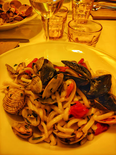 Read moreThis was absolutely our best meal in Salerno. Even though we made two very bad American tourist mistakes (ordered apertivo with dinner and forgot to go to the counter to pay for quite a while) we were warmly welcomed and served by several waiters. I ordered house made pasta with fruitta di mare which was clams and my partner got the langoustine scampi. Both dishes were absolutely delicious to the point that I was mopping up the broth with the table bread. For our secondi, we had a grilled medley of swordfish, cuttlefish, tuna, and langoustine. All were grilled to perfection and delicious. This was definitely a local spot and be prepared to use a bit of your basic italian. If coming through Salerno, this is a...