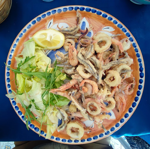 E poi, la Frittura di Alici: croccante fuori, morbidissima dentro, con quel sapore pulito e intenso che solo il pesce appena pescato può regalare. Leggera, non un grammo di olio superfluo, servita con una spruzzata di sale marino e accompagnata da limoni locali che ne esaltano la freschezza. Una dimostrazione di come la cucina semplice, quando eseguita alla perfezione, diventi sublime.