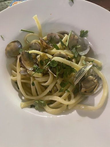 This restaurant was recommended to us by our rental host- it did not disappoint. This is ran by a husband and wife - seems like the wife did the cooking, and the husband was the waiter- I believe his name was Carlo- super friendly and seemed to be a local superstar as he knew every patron there and the pedestrians walking by- including a street saxophone performer who stopped by and serenaded the patrons. This restaurant is tucked away in a quieter street in historic Salerno, which added to the charming ambiance.