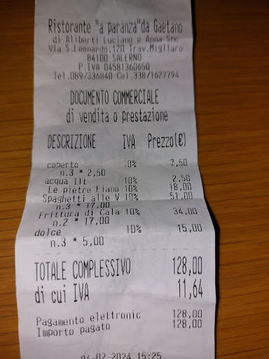 Domenica scorsa, mi trovavo a Salerno e con mia figlia sono stato in questo locale, semplice e ubicato in una zona fuori mano. Avevo dato un'occhiata agli altri locali del centro, ma non c'era posto e ho dovuto ripiegare su quest'ultimo, restando alla fine... per niente soddisfatto, sia per il cibo che per i prezzi, i quali mi sono sembrati un po' alti rispetto la qualità delle portate prese e della stessa location. L'antipasto, "insalata di polipo", è stato buono, fresco, niente da dire, ma i primi, uno "scialatiello ai frutti di mare", con pasta fresca e uno "spaghetto alle vongole veraci", ci hanno delusi: praticamente lo stesso sapore, salati e fatti con sugo già pronto, non sapevano, il primo per niente di sapore di mare e il secondo per niente di vongole e gli spaghetti erano scotti, sembrava di mangiare la stessa cosa. Chiaramente ho lamentato la cosa al cameriere, ma niente, solo alla fine, mentre pagavo il conto, dicendolo alla figlia del proprietario, quest'ultima, già preparata, testualmente mi ha detto: "sono i suoi gusti che le fanno sembrare tutto uguale". Cara sig.ra, tenendo a parte i miei gusti, le pietanze che ci ha servito, non sapevano né di misto di mare, né di vongole, oltre l'eccessiva cottura degli spaghetti. Aggiungo anche che altrove, per farsi in parte apprezzare, sicuramente avrebbero risposto alle lamentele: "non si preoccupi, gli spaghetti li rifacciamo". Non...