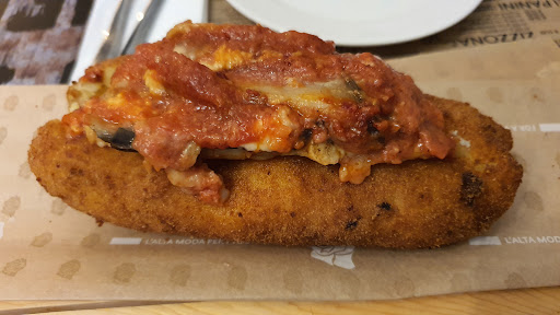 Read morePaninoteca situata in pieno centro storico di Salerno. Offre una vasta scelta tra panini, crocchettoni, mozzarella con contorni, e fritti vari. La qualità del cibo è buona, nulla di surgelato, tutto di propria produzione. Il panino è grande quanto basta per saziare ma senza gonfiare. Davvero particolare il panino all'alga spirulina con polpo e scaglie di mela, buono, fresco e sicuramente innovativo ed originale. Crocchettone abbastanza grande per uno (giusto per due persone) ma con poco "contorno". Ho visto quello con la mortadella e son stato contento di non averlo preso (cosisteva in 2 fette di mortadella su un crocchettone) e la parmigiana sul nostro era un tantino giusta (ne avrei preferito una maggiore quantità). I panini sono singoli e non vengono accompagnati da patatine fritte. Nel "Toc maiale" sul menu c'è scritto anelli di cipolla, invece dentro c'era la cipolla tritata e saltata (quella che si mette anche sugli hot dog per intenderci). Prezzi nella media e tempi d'attesa un pochino lunghi. Si chiama così "Toc Toc" perché all'interno vi sono delle cornici con all'interno i vari emblemi che si mettono avanti alle porte per bussare. Un idea sicuramente originale ma gestita male a mio parere, in quanto l'arredamento interno lascia un po a desiderare, troppe cose sparpagliate che creano confusione visiva. Tuttavia il cibo è buono e vale la pena comunque andarci. Ah il gestore (molto gentile e cordiale) dopo aver pagato ci ha omaggiato di...