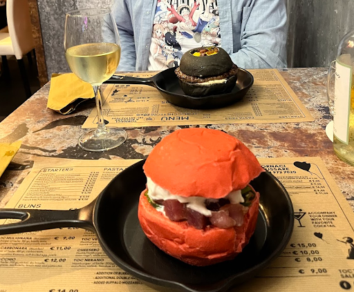 WOW! The ambiance and decor, the service, and the food were all spectacular here. Some of the staff also speak English or Spanish which was great for us. While not your traditional Italian cuisine, we agreed this was not a meal we could have found anywhere else - the quality, presentation, uniqueness, and taste of the food were amazing. Definitely worth checking this place out whether you're a tourist or a local! I tasted both the Toc Carbonara (black bun with burger + dippy egg in the middle) and a tartar sandwich I can't recall the name of from the Fish menu on the red burger. Both were so delicious -...