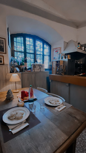 Read moreUn salto a Tabiano da quel di Reggio Emilia,arriviamo in loco e,prima di procedere alla visita del Castello,ci premuniamo di prenotare per il pranzo.Entriamo nella locanda e meraviglia!!Ci troviamo catapultati tra il provenzale,lo shabby chic,il vintage,l antico,il rustico..Ogni dettaglio parla di una ricerca fatta con criterio,nulla lasciato al caso,tutto per accogliere al meglio,dalla splendida veranda chiusa con stufa d epoca,alla toilette....Ci accoglie Oscar,il titolare,forse un pò timido ma,di una gentilezza naturale e spontanea.Abbiamo pranzato con,Gnocchi al pomodoro,maialino nero con patate,tortino di parmigiano,ricotta con marmellata ai frutti di bosco,insalata mista,e budino di yogurth anch esso ai frutti di bosco.Ottimo!!!Consiglio vivamente la visita al Castello ma,prenotate prima alla Locanda...