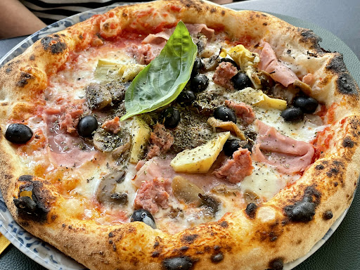 Online waren 2/3 der Tische frei, also dachte man sich man müsste nicht reservieren. Als wir ankamen wurden wir mit dem Hund an einem Hochtisch platziert was wir danken ablehnten. Danach wurden wir zu dem Pizzabäcker platziert. Bank total nass weils den ganzen Tag dort reinregnete, als wir die kellner auf die Tische ansprachen setzte sie uns eine Reihe weiter. Alles klar wir hatten Hunger und haben auch damit gelebt obwohl 2/3 der Tische im Restaurant frei waren.
