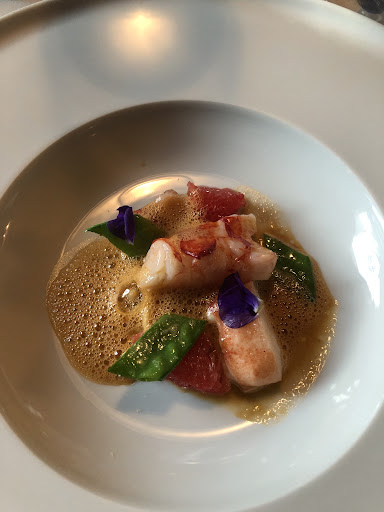 It had it’s ups and downs. The bouche wasn’t really amusing. The sous-vide amberjack (why sous-vide?) was bland and dominated by a drop of spicy gazpacho and confused with a slice of watermelon. The blue lobster, although perfectly cooked, was served with borlotti beans and a slice of grapefruit. The main, a venison saddle, although perfectly cooked, was embarassed by a potato tart and a cabbage-speck combo that was dancing between no flavor and smoke flavor.