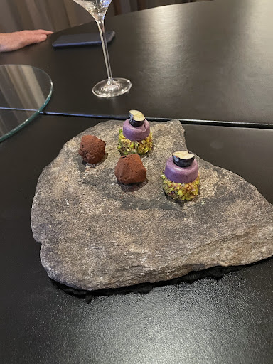 Das "Spektakel" beginnt mit dem persönlichen und sympathischen Service durch die Chefin und Sommelière Melanie, die einen durch das Menü führt, Allergien und Unverträglichkeiten abklärt und einen natürlich auf Wunsch auch bei der richtigen Weinauswahl berät. Unsere dringende Empfehlung ist es jedoch, sich nicht selbst durch die sehr gute Weinkarte zu arbeiten, sondern sich auf die perfekt auf das Menü abgestimmte Weinbegleitung einzulassen - sie werden es nicht bereuen. Die Kombination und Stimmigkeit der Getränke zu den gereichten Speisen ist einzigartig und geht weit über eine "normale" Weinbegleitung hinaus.