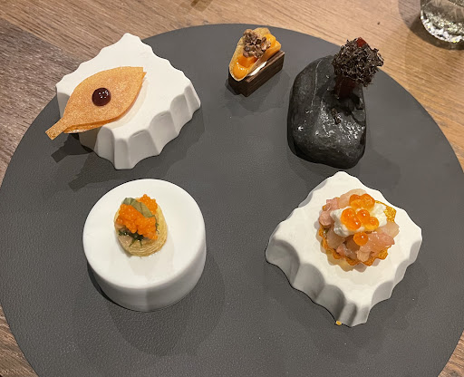 This meal was a top 5 of my life, possibly #1! The creative and artistic presentation was definitely #1. I ordered the seafood tasting menu and it was absolutely wonderful. I don’t want to describe it too much, since it is worth being surprised. The descriptions on the menu don’t prepare you for the artistic presentation. The food was excellent throughout, with really interesting, unexpected and complex flavors that were exceptional. Finally, the staff was incredible. To be fair, we went on a quiet mid week night and were 1 of three tables being served. Regardless they were incredibly helpful, kind, fun and attentive without being intrusive. Truly superior service. We have been to a good number of Michelin starred restaurants that came nowhere close to this experience. We will definitely be back. It was a...