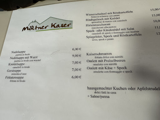 Read moreEsperienza positiva per il cibo ad eccezione di un pittore che consisteva in carne bollita con salsa verde e patate. La carne era secca e simile a cartone. Evidentemente tagliata molto prima dell'ordine e non lasciata nel brodo. E' stata immediatamente rimandata indietro ma, alla fine del pasto fatta pagare. Quando mia moglie ha chiesto il perché e stata trattata in maniera maleducata chiedendole di che nazionalità era e affermando che non capiva niente di cucina. Faccio notare che fra di noi tutti lavorano nella ristorazione ad eccezione dello scrivente, fra cui uno opera come chef in unconosciuto ristorante di Bolzano. La scena è finita con una cameriera che ha portato in mano la carne in questione, mia moglie non la accettata, probabilmente la ha mangiata qualcuno il giorno dopo. Do due stelle in quanto il resto del cibo era buono ma, sia il piatto in questione che il comportamento sono...