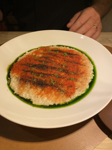 Definitely the best meal I had for my Dolomites trip this summer! I came in here thinking of a casual dinner with traditional Italian food, but ended up with a semi-fine dining experience with excellent creative modern Italien cuisine, which made it such a perfect night. The atmosphere and decor is pleasant, a chic modern Alps vibe. The menu is brief but filled with surprising combinations. But the food, a great & successful modernized creation based on tradition Italien cuisine. First came the starter, beef tartar. The cheese melts like soft cream & the beef blends smoothly with the bean purée, it doesn’t taste like meat anymore but like a perfect bite of a cloud. Then came the entree, deer steak. A perfect medium rare paired with lightly grilled apple slices & lightly salty walnut purée, hence the perfect balance of meaty & fruity, hint of salty & sweetness. Then came the most interesting & innovative Tiramisu I’ve ever tried. It’s nothing like an ordinary tiramisu. It got mascarpone with cocoa, vanilla ice cream, and whipped cream on the side, topped with a leafy-like baked waffle. Very lightly but elegantly sweetened to perfection. It’s truly a nice dining experience with great innovative food & mostly nice service! The young waiter kept checking in to see if everything’s ok & we had a nice chat, the owner is a very polite & friendly lady who introduced that her husband is the chef & he loves cooking. Only issue which made my experience less pleasant: I was greeted by an elder waiter, who was cold & refused to let me sit by the window (it was early dinner time, no one inside the restaurant yet) & sat me in a dark corner (where I could barely read the menu but ended up using my phone lighting, when it was still bright & sunny outside) . I am an Asian woman traveling by myself, I am not sure if this is some factor. But when other guests came in, he showed them to window seats or seats in the center, with much better lighting. I truly enjoyed the food, but its moments like this make me feel awkward...