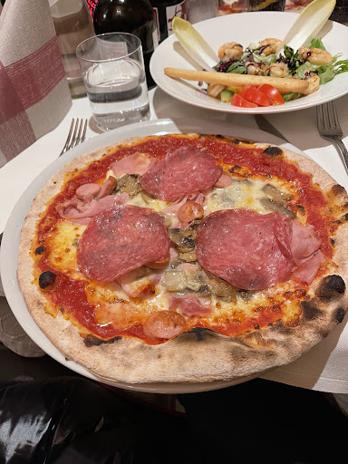 Read moreWe were seated and given menus fairly promptly but the rest of the service was nothing out of the ordinary. Food was so-so, the pizza was good, pappardelle was a little too Al dente for my liking, only had a shaving of speck on top and used canned mushrooms. The red was lovely but the Prosecco tasted cheap. The salad was tasty but the bread dry. We were given a bottle of tap water but no glasses and no plates for eating the bread on or sharing a slice of pizza. Given so, we didn’t touch our water and kindly requested it removed from the bill (seeing as we were unable to drink it!) and the waitress was very unhappy, essentially yelling at us in Italian despite speaking to us in English beforehand and knowing that we didn’t speak Italian. It felt like she was trying to intimidate and confuse us into letting the matter go, but we felt like this was a simple and reasonable request and did eventually get the €4 removed from the bill. Overall I would say the place has the ability to be very lovely due to its atmosphere and design, but it is far too expensive for the quality and service was underwhelming so we...