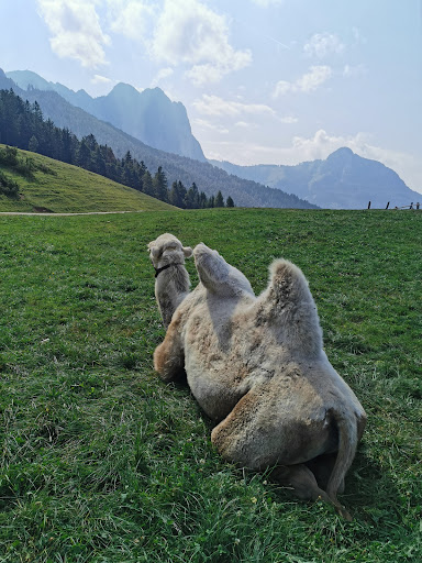 GIORNATA STUPENDA - Si parcheggia ai laghetti di Fiè in un ampio parcheggio alberato, costo 6€. Da li un strada sterrata percorribile benissimo con passeggini, in un oretta di camminata in salita si arriva alla Malga. Una visuale stupenda, prati bellissimi, cavalli, cammelli, lama, asini...tutti che si lasciano accarezzare. Il locale ha tantissimi tavoli all'aperto, non accettano prenotazioni ma noi eravamo in 7 e nell'ora di punta il gestore molto professionale in 10 minuti ci ha trovato un tavolo bellissimo e cosi via anche per altri clienti. Sembrava che ci fosse una confusione ed invece il personale è preparato a reggere l'alto ritmo di visitatori e funzionava tutto alla perfezione. Complimenti a tutte le ragazze dello staff ! Il menù tipico tirolese, con diverse scelte. I prezzi nella norma forse anche meglio di altre malghe, bisogna pensare anche i costi dell'approvvigionamento non è cosi semplice lassù. Diverse torte fatte in casa a chiudere il pranzo. Disponibili sdraio per gli ospiti per il dopo pranzo, scivolo per i bambini, altalena e calcetto per grandi e piccoli, posto di ricarica per le e-bike La cucina è aperta sino alle 17 ! La giornata è stata cosi piacevole che siamo rimasti sino alle 19 e vi era ancora il sole alto. Ancora complimenti per averci fatto passare una Domenica stupenda malgrado ci fosse un numero spaventoso di persone ma tutto il personale ha saputo gestire la massa di clienti in assoluta tranquillità con attese normalissime. Grazie non posso che consigliare camminata, location, cucina...