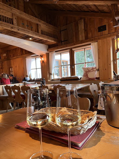 Read moreLove this mountain hut. It’s a 20-25 min walk from town or you can stop by if you’re on the run that goes right through it. Quite cool to sit outside and watch the skiers & boarders fly by. They have plenty of seating outside, tables in front of the buidling and then benches and sun loungers on the other side of the run (around the fire pit). After the sun went behind the mountain we moved inside where it’s very cute. I started with the smoked sausage and some hot horseradish. The caprese was good - flavorful tomatoes and lots of mozzarella. My husbands spaghetti aglio e olio was delicious. Very garlicky and good portion. I really enjoyed the kaiserschmarrn. My new favorite dessert. The service was very friendly and good wine options. I wanted to go back the next day and try more...