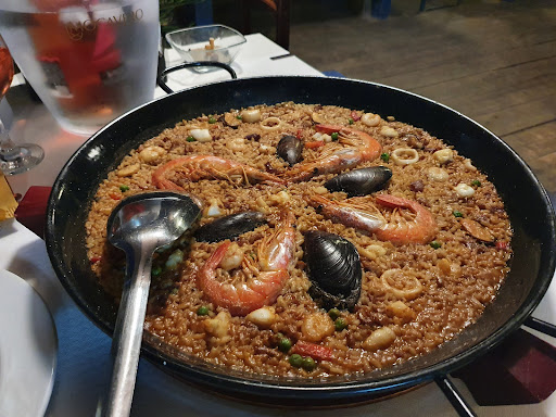 The Paella for two was pretty big. Big and small shrimp, calamari, mussels. Lots of good seafood. Flavours good and authentic. Rice could have been a tad less cooked. But it was a very good meal. For sure a very good Paella, especially considered that this is Italy. The bottle of Rosé was a good match. Friendly owner, fair prices. A...