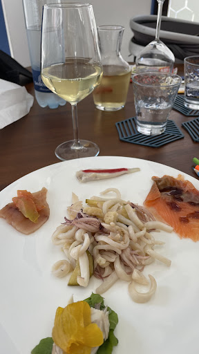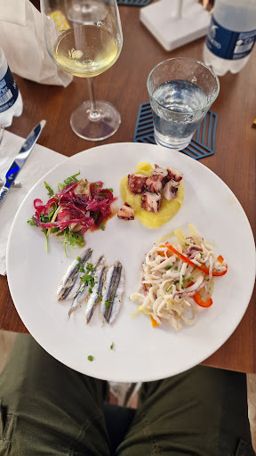 A must-go place for seafood in San Benedetto: great service (menu in several languages, detailed extra explanations and help in choosing) fantastic cooking (classics, but also special seafood, all very fresh and prepared with a twist, generous servings): we had mixed starters (warm and cold), two different seafood dishes with pasta, and desserts as well as aperitifs very child-friendly, and very good location in the pedestrian precinct of the town (great for dining outside) Alessandro and his team deserve more...