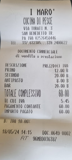 Read moreDomenica scorsa sono tornata per la seconda volta da I Marò. La struttura del ristorante è semplice nulla di pretenzioso ma i piatti sono pieni di sapore dalla polenta col pesce agli scampi al limone al crostino con cime di rapa burrata e alici. Tutto ottimo perfino i bomboletti che io personalmente non amo da I Marò sono ricchi di aromi...