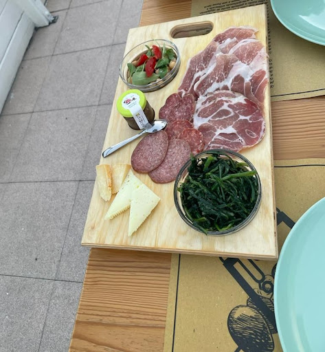 Read moreIl giudizio potete ricavarlo da soli, io metterò solo l'elenco di quanto ordinato e della somma pagata: 1 antipasto 18€ guardate in foto le quantità nel tagliere roba che neanche gli assaggini gourmet... 6 olive ascolane 5€, 15 arrosticini fatti a mano 1.50€ cad. che dovevano essere il doppio di quello normali a detta del giovane cameriere; non so cosa intendano per normali loro ma quelli che abbiamo ricevuto erano 3 pezzettini di carne di agnello che non erano neanche lontani parenti di quelli che si mangiano a pochi km in abruzzo, 1 porzione di patatine, 1 birra da 6.50€ ed 1 bottiglia d'acqua + coperto per due persone, totale: 63€, esatto: sessantatrè euro. Questi soldi si spendono per mangiare pesce con le porzioni doppie rispetto a quelle di questo posto. Io ho un aggettivo per descrivere un posto come questo ma me lo...