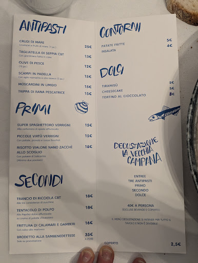 Il Ristorante Vecchia Campana si è rivelato una piacevole scoperta nel cuore di San Benedetto del Tronto Alto. Abbiamo avuto il privilegio di cenare nel loro incantevole giardino nascosto, un luogo riservato e tranquillo che ha reso la nostra serata ancora più speciale. All'interno, il ristorante è una vera e propria chicca, arredato con gusto e attenzione ai dettagli che conferiscono un'atmosfera accogliente e raffinata. Lo staff merita il massimo dei complimenti: ci ha accolto con estrema gentilezza e professionalità, rendendo l'esperienza culinaria non solo gustosa ma anche piacevolmente rilassante. Abbiamo optato per tre primi piatti: due scrigni di scampi che hanno conquistato il nostro palato con sapori delicati e raffinati, e una pasta al pomodoro fresco e basilico per nostro figlio, che ha fatto incetta di complimenti. Le portate principali hanno saputo rispecchiare la qualità e la cura per i dettagli che ci aspettavamo. Abbiamo anche provato due fritture che, purtroppo, non hanno del tutto soddisfatto le nostre aspettative personali. Per concludere in dolcezza, abbiamo gustato due deliziosi tiramisù, che hanno rappresentato un finale perfetto per la nostra cena. Sebbene il conto sia stato leggermente più alto delle nostre attese in rapporto al cibo servito, abbiamo apprezzato l'organizzazione e la varietà del menu, che offre una selezione ben equilibrata di primi e secondi piatti. È un luogo ideale per rilassarsi e godersi la cena in...