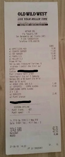 Conclusione: L'Old Wild West offre un'esperienza culinaria soddisfacente. Il cibo è di buona qualità, e il servizio è apprezzabile. Se cercate un luogo dove trascorrere una serata piacevole e diversa dal solito, questo ristorante a tema western potrebbe essere una scelta adatta.