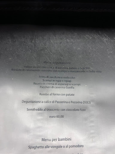 Read moreL' attenzione, manca l' attenzione. L' attenzione al luogo: una location molto suggestiva ( la vecchia osteria del porto d' Ascoli di epoca rinascimentale successivamente fu la caserma dei doganieri tra lo Stato Pontificia e il Regno) mal valorizzata, specialmente nella seconda sala, con un allestimento privo di gusto che non sfrutta minimamente la bellezza della struttura (acquario tipo Inca , trompe l' œil di paesaggio marino probabilmente ligure...). La tradizione marinaresca Sambenedettese presente solo nella prima sala che invece valorizza la struttura. L' attenzione al cliente: attesa molto lunga tra gli antipasti e i primi, ma si può perdonare, succede! Quello che poco si tollera è servire un vino bianco caldo. Il vino lo abbiamo scelto noi ma avremmo preferito che ci venisse detto che non era in fresco e ci saremmo volentieri affidati ad un suggerimento. Attenzione ai piatti: quasi tutti i piatti provati, ottimi. Ottimo equilibrio tra la tradizione e la rivisitazione in chiave moderna. Da non perdere le olive di pesce e le triglie marinate. Anche qui purtroppo il giudizio viene compromesso da un piatto non all' altezza (che sempre può succedere) sul quale il ristoratore ha fatto finta di nulla. Avevamo preso spaghetti al nero di seppia ( insapori, sciapi, colorati di nero ma che sapevano solo di pasta bollita) lasciati interamente nel piatto. Il piatto è stato sparecchiato e nessuno si è premurato di sapere come mai. Sarebbe un posto da 4 stelle o forse più se ci fosse maggiore attenzione. Qualcosa può sempre andare storto ma...