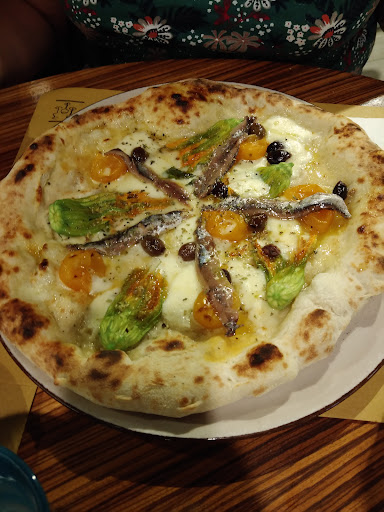 Read moreLa cosa più fastidiosa purtroppo è il frastuono che si crea nella sala, esci da lì per manifesta incapacità di sopportare oltre lo stress mentale, non riesci a sentire il tuo vicino. È un grande handicap purtroppo, sarà per il tipo di struttura è riverbero. La pizza non è male, disponibili anche altre farine, a seconda dei giorni. La pizza è stile napoletana (versione che personalmente non amo) alta con cornicione alto e pieno ma più digeribile rispetto alle classiche napoletane, il sale non è per fortuna in eccesso. Il servizio lascia un po' a desiderare, soprattutto per i tempi di attesa quando il locale è pieno. Il tipo di arredamento moderno e abbastanza freddo (alla Canavacciuolo) per i miei gusti è un po' deprimente (ma contrariamente ad altri può risultare un punto di forza). Molto graditi dei cubetti di focaccia calda offerti da loro appena...
