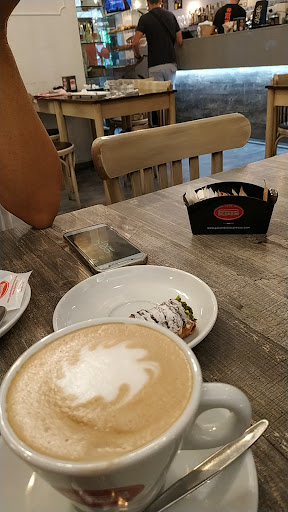 Incuriosito da recentissimo cambio gestione, stamattina sono andato per consumare colazione. Prima nota di merito, la disponibilità di latte di riso l che non è proprio scontata in tanti bar del centro👏👏👏. In bella vista, ottimo assortimento di lieviti da colazione: sono andato su cornetto alla crema di una delle migliori pasticcerie della città😋. La mia attenzione, poi, è stata attirata da un paio di ciambelloni di produzione propria (uno con farina di riso) che mi affretterò a collaudare, visto il loro aspetto assai invitante che riportava alle produzioni "homemade"😀 di mia madre💓. Personale molto cordiale, che ringrazio qui per il giusto sprint conferito alla mia giornata lavorativa😅!! Ci torno sicuramente, considerato che il locale si presenta molto bene (ampio all'interno con nell'arredamento, disponibilità di posti all'esterno) e l'offerta prevede anche pausa pranzo e aperitivi cenati. Why not?😉 Brave, continuate...