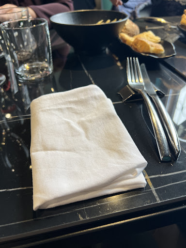 Una volta seduti, abbiamo trovato un ambiente che poco rispecchiava l’immagine di qualità che ci aspettavamo: tavoli di marmo non coperti da tovaglia e tovaglioli in stoffa completamente sgualciti. Abbiamo comunque ordinato, consumato il pasto e pagato il conto — senza che nessuno si sia degnato di presentare le scuse per quanto accaduto.