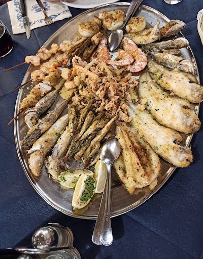 Read moreIn occasione dell'onomastico di mia madre, siamo stati invitati da lei presso questo ristorante naturalmente dopo aver prenotato. Ci presentiamo in 4 domenica a ora di pranzo e non solo non avevano preparato il tavolo ma a quanto sembra non si ricordavano nemmeno della prenotazione fatta, che poi hanno trovato segnata, cmq con la scusa del battezzo che avevano in sala cercano di scusarsi e ci sistemano alla meglio maniera anche xké fortunatamente un po' di tavoli liberi c'erano ancora. Appena pronti vengono a prendere l'ordine e partendo da un antipasto di pesce freddo, arrivato in men che non si dica e per di più anche buono, ci siamo intrattenuti assaggiando i loro passatelli in brodo di pesce abbinati a dei tagliolini al sugo di pesce , entrambi squisiti, per terminare in un misto di frittura e grigliata che sono andate giù deliziando il palato nonostante fossimo pieni, devo aggiungere una vasta scelta di dolci anche loro meritevoli, vino della casa degno di essere paragonato ad un buon prosecco, tra l'altro sceso in tavola a fiumi, caffè e un'ottima ma aggiungo squisita delicata vellutata grappa trentina. Siamo andati via belli sazi e deliziati ma soprattutto contenti per aver pagato il giusto. Se non fosse stato per quel gap iniziale avrei...