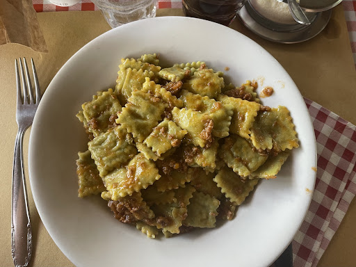 Read moreI ravioli sono DI-VI-NI e abbondanti. Fatti tutti uno a uno a mano. I secondi di carne non sono da meno. Se vi rimane del posto ci sono i dolci che io non sono riuscito a mangiare data la quantità di cibo ingurgitata. Ottime le materie prime utilizzate. Il servizio attento e veloce, adeguato al locale, ma in sofferenza quando ci sono troppe persone. Il prezzo è giusto, forse qualche euro di meno rispetto alle aspettative. In estate è lodevole la collocazione esterna e in inverno le stufe a legna sono sufficienti a scaldare tutti i locali. Un pochino distante dalle vie principali.