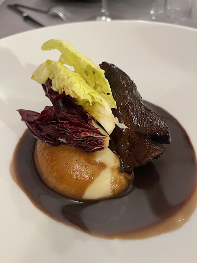 Per i primi, abbiamo scelto gnocchi di zucca e tagliolini al San Daniele, piatti che rispecchiano la tradizione del territorio e che ci hanno sorpreso per la ricchezza di sapore. Il fogolâr, utilizzato per cucinare le carni e le verdure, è uno degli elementi distintivi del ristorante, che mantiene vivi i sapori autentici cucinando sulla brace di faggio. I nostri secondi, un filetto tenerissimo e un polpo alla griglia, hanno dimostrato ancora una volta l’attenzione al dettaglio e alla perfezione della cottura.