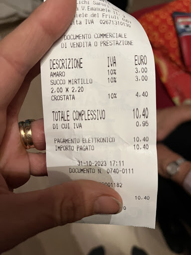 Read moreCi siamo recati per caso in questo luogo e siamo rimasti piacevolmente sorpresi poiché è un posto molto tranquillo e curato. Abbiamo preso due tartine col san daniele davvero buone: con un ottimo prosciutto e un buon pane caldo (accortezza molto gradita e non scontata). Anche io vino della casa inoltre è molto buono e delicato. Con l’aperitivo ci hanno anche portato degli arachidi. La signora che ci ha servito era molto...