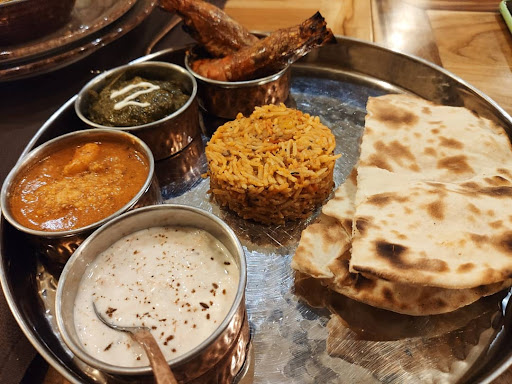 Read morePremetto che non sono un grande amante della cucina indiana, l'ho provata molte volte anche durante i miei numerosi viaggi in India. Non è un problema di "troppo speziato", ma piuttosto del tipo di spezie che vengono utilizzate. A parte questo, che ripeto è un gusto personale e che quindi non andrà ad influire sulla mia recensione, ho voluto fare visita a questo ristorante perché ero incuriosito dalle recensioni. Il locale è molto bello, con un arredamento sobrio e curato e anche la mise en place è ben fatta, anche se al nostro tavolo ed anche ai due a fianco al nostro mancavano le posate, che ci sono state portate successivamente. Bisogna fare un po' più di attenzione. Come benvenuto viene portato un tris di salse molto diverse tra loro, accompagnate con del pane simile al carasau sardo. Tutto veramente buono, le salse erano davvero eccellenti. Abbiamo poi ordinato il piatto Royal Maharaja Thali, che costa 35 € a persona e promette un viaggio a 360° gradi immersi nella cucina indiana. Attesa un po' lunga (ma eravamo stati avvertiti dalla titolare, quindi va bene così) ma ne è valsa la pena. Prima arriva un mix di antipasto misti, fritti in una pastella molto gradevole. Tutto molto buono. Poi arriva quello che in realtà non è un piatto unico, ma un vero e proprio menù, con 9 pietanze diverse tra cui pollo, agnello, gamberoni, riso e molto altro. Il tutto accompagnato da due tipi di pane morbido simili ad una piadina, uno ripieno al formaggio e uno aromatizzato al burro. Devo dire che tutte le pietanze assaggiate erano ottime, molto particolari, molto diverse tra loro, quindi se il proposito era quello di fare provare un po' di tutto, missione compiuta senza dubbio. Oltretutto, porzioni decisamente abbondanti, alla fine eravamo davvero pieni e non me lo aspettavo proprio, perché di solito questi menu sulle porzioni lasciano in po' a desiderare. Non è questo il caso: tutto abbondante. Dopo il menù abbiamo preso del gelato, uno al pistacchio e uno al mango (il dolce è compreso nel prezzo del menu) che mi ha ricordato davvero quando anni fa ero in spiaggia a Goa. Va provato perché non ha nulla a che fare con il nostro gelato. Infine, un Tè chai, anch'esso compreso nel menù. Con due birre da 66 cl (la Cobra) il tutto è costato per due persone 86 €. Quindi, sicuramente un'esperienza positiva, qualcosa da rivedere nel servizio come ho già segnalato nella recensione ma senza dubbio consigliatissimo. Prenotate così...