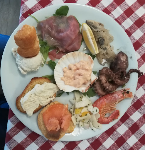 Trattoria rustica in un contesto tranquillo e con piatti di pesce🦐 classici e tradizionali (bisat compreso) ma anche di carne🍗 (cinghiale, trippa,... ) . Nella mia esperienza con un corposo pranzo a base di diversi piatti di pesce, posso evidenziare una materia prima di qualità, spesso valorizzata dalla cucina (fritti asciutti e non pesanti così come mantecature molto buone , ad es) ma anche qualche carenza nella pulitura del pesce 🐟 ( crostacei🦀 non ben puliti, capesante e canestrelli con sabbia nel guazzetto..). Vini della casa, sia rossi che bianchi, abbastanza buoni🍷, prezzi nella media. Locale non esagerato negli spazi ma con tavoli e panche anche all'aperto, per la bella stagione, fronte strada...