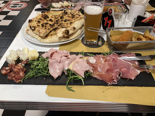 5)Patatine fritte molto buone. Fritti sufficienti. Pinsa bianca (nei taglieri) molto buona. Carne cruda nei panini (abbiamo dovuto chiedere di farla cuocere di più). Taglieri mancanti di salame, sostituito con mortadella (senza essere avvertiti prima). Formaggio e salumi sufficienti.
