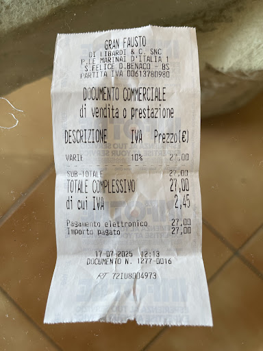 When we came to pay, the unitemised bill was €27. When we questioned this (in Italian), the woman we dealt with said “si” and quickly told us what we had bought in Italian.