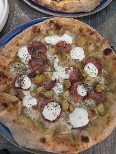Il locale è bello, accogliente, fresco e verde peccato che abbiano voluto strafare con i posti. I tavoli all'interno sono tanto attaccati tra di loro da impedire il passaggio ad eventuali passeggini e creano difficoltà nel muoversi. Il cibo è buonissimo, le pizze ottime e gli antipasti pure. Peccato che le porzioni, per i prezzi proposti, siano un po' ristrette. Non è stata tanto convincente la pizza fritta. Il punto dolente è il servizio. Non tanto per i tempi di attesa ma per il personale. Molto scorbutico è disorganizzato. Più di una volta i camerieri sono venuti a chiederci se ci fossero altre portate palesemente senza controllare la comanda togliendoci anche i piatti nonostante ce ne fossero delle altre. Per non dire che a fine serata ci hanno sollecitato di lasciare il tavolo per necessità nonostante noi stessimo lì a fare due chiacchiere, gesto un po' sgarbato. Consiglierei di rivedere un attimo questi comportamenti. Ma non per questo il locale sia...