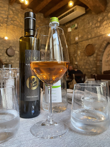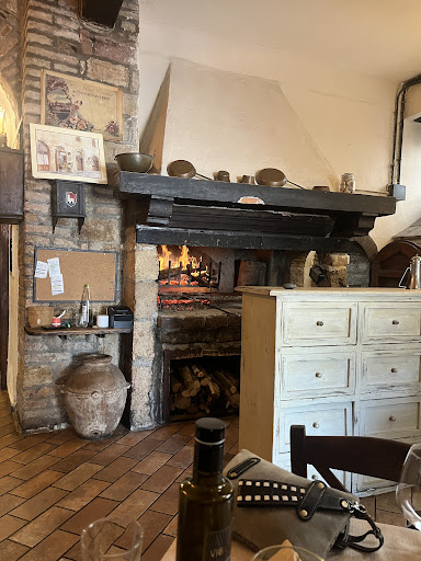 eravamo in viaggio e abbiamo deciso di fermarci per il pranzo a san gemini dove non eravamo mai stati. passeggiando incontriamo un signore gentilissimo che ci suggerisce di pranzare qui od in un altro ristorante che però vediamo essere pieno... camminiamo così qualche altro passo per vedere come fosse la situazione qui e già dall'esterno il posto si presenta in modo molto invitante! Entriamo e siamo subito rapiti dall'atmosfera del luogo, molto caratteristica, con un bel braciere a vista dove uno chef arrostisce carni dal profumo fantastico! Vecchi oggetti della tradizione contadina sparsi ovunque a completare la scenografia di travi a vista e muri giustamente non intonacati. Ci sediamo in una sala interna con vetrate sull'esterno da cui vediamo anche il torchio che fa nostra di se all'esterno. Cucina davvero meravigliosa che meriterebbe di soggiornare qui per alcuni giorni per poter assaggiare tutto! Potete scegliere piatti piu tradizionali o creazioni più originali... avrete solo l'imbarazzo della scelta! Al momento del dolce decido di accompagnarlo con un liquore e chiedo così consiglio circa il sapore di uno di essi alla signora (che con l'altra avevano l'aria di essere le responsabili) che mi da delle indicazioni ma la vedo andare di la un po' dubbiosa... poco dopo torna correggendo quanto detto prima! E così ripiego su un liquore siciliano che so per certo essere ben dolce come piace a me. Ho molto apprezzato questo scrupolo della signora: ha preferito mostrare la sua impreparazione chiedendo a qualcuno piu esperto piuttosto che deludere il cliente portando qualcosa che non avrebbe incontrato il mio gusto! Umiltà e correttezza sono doti di professionalità imprescindibili nella ristorazione! Tanto di capello! Una pranzo davvero da riconciliarsi con il mondo! Unica pecca, devo dirlo, il non cambiare le posate tra una portata e l'altra... da un ristorante di questo livello confesso che uno se lo aspetta! Soprattutto se incrocio le posate nel piatto mi sembra poco opportuno che il cameriere le prenda e me le rimetta sul tavolo... devo però dire che questo cameriere sembrava più impacciato degli altri.. forse personale aggiuntivo poco preparato preso per il periodo di forte lavoro.. non so. Tuttavia ho deciso di dare lo stesso 5 stelle perche il luogo, la cucina e la cordiale disponibilità delle due signore meritano davvero il massimo punteggio! Prezzo adeguato al livello della cucina, soldi...