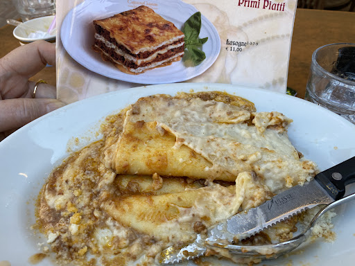 My wife enjoyed lasagna for dinner while I had ravioli and vegetable soup . My wife had a 'spritzer' drink while I had an IPA beer. Prior the food arriving we received tasty bread, potato chips, and cheese puffs as 'appetizers.' Everything tasted fine, the service was prompt, and we were attended to no differently than the locals. My wife and I had dinner on a Sunday evening when the square was incredibly busy. All the cafeteria's tables were kept busy, and they had the outdoor heaters turned on since the wind was a bit chilly. The bill was 43EUR - quite inexpensive. Was it fancy or extravagant? No. But it was completely acceptable and offered the opportunity to people-watch as the town square in which the cafeteria sits was very...